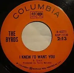 "I Knew I'd Want You" is a song by the folk rock band the Byrds, written by band member Gene Clark, and first released as the B-side to their 1965 debut single, "Mr. Tambourine Man".[1] It was also later included on their debut album, Mr. Tambourine Man.[2]