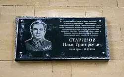 Colonel Ilya Grigoryevich Starinov (Russian: Илья Григорьевич Старинов; 2 August [O.S. 20 July] 1900, village of Voynovo, today's Oryol Oblast – 18 November 2000) was a Soviet military officer, the most famous Soviet saboteur.