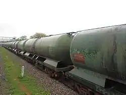 Indian Railways operates more than 4000 cargo and goods trains daily.[11] It hauls variety of cargo to cater to various requirements and have specialized rolling stock corresponding to the cargo hauled. There are 243 types of rolling stock used for cargo operations.[48] These include covered wagons, boxcars, flat wagons, flatbeds, open wagons, hoppers, containers, automobile carriers, defense vehicle carriers and tankers.[49][50] The freight cars can often carry loads from 10 to 80 tonnes per car depending on the configuration.[49]