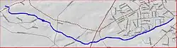 Its source is at 40°24′57″N 74°25′00″W / 40.41583°N 74.41667°W / 40.41583; -74.41667,[1] near the intersection of Cranbury Road and Rues Lane in east central East Brunswick. It crosses Fern Road, then runs through the East Brunswick Community Park and the Ireland Brook County Park. Crossing Dunhams Corner Road and the New Jersey Turnpike, it continues running through the long Ireland Brook County Park. It crosses Fresh Ponds Road and Riva Avenue, and drains into the Farrington Lake, a dammed section of the Lawrence Brook, at 40°25′14″N 74°29′07″W / 40.42056°N 74.48528°W / 40.42056; -74.48528.[1]