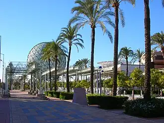 The former island is connected by notable bridges, such as the Calatrava designed Puente del Alamillo and the Puente de la Barqueta. Among other infrastructures and buildings located on the Isla de la Cartuja, the most important is Cartuja 93 park, a research and development complex, employing 15,000 persons.[1] The La Cartuja Stadium, University Schools of Engineering and Communications, the musealized Pavilion of Navigation,[2] the Centro Andaluz de Arte Contemporáneo (Andalusian Contemporary Art Center)[3] and the Jardín Americano (American Garden, a public botanic garden)[4] are also located here. Additionally, La Cartuja houses several discothèques, and a number of concert halls and theaters, including the Rocío Jurado auditorium, and the Central Theatre,[5] as well as the amusement park Isla Mágica.