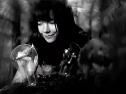The music video for "Isobel" was directed by Michel Gondry, who had directed the avant-garde videos for "Human Behaviour" and "Army of Me".[41] It was filmed for two days in a forest in Dolgellau, near Llangollen, Wales.[42][43] A "long day" of shooting also took place in Black Island Studios in London on 31 May 1995. The crew used a Mitchell S35 camera with varispeed to be able to rewind the camera and do superimpositions and masks, inspired by Georges Méliès' work. "Model Solutions", an English model maker crew, built the harmonium used in the video, and the art department led by Joseph Bennett brought the model planes, insects and lightbulbs. The filming process was not easy, as the day was rainy, no one was quite sure of what they were doing and Björk did not like her outfit (she wears two different outfits in the video for this reason). To get projections to appear inside the water organ of the video, the crew used a mirror trick and filmed it in London, as the screen for rear projections was big and needed much distance. The final music video was projected in 35mm for the crew in a cinema in London; with its varying exposures, lighting effects and monochromatic schema, it resembles an early film.[43]