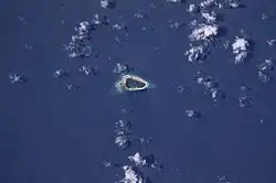 Jabat Island (or Jabot Island or Jabwot Island; Marshallese: Jebat, [tʲɛbˠɑtˠ][1]) is an island in the Pacific Ocean, and forms a legislative district of the Ralik Chain of the Marshall Islands. Its total land area is only 0.6 square kilometers (0.23 sq mi), and has a length of 1.2 kilometers (0.75 mi). It is located 12 kilometers (7.5 mi) from Ailinglapalap Atoll. Unlike most of the other islands in the Marshall Islands, Jabat Island is a rocky island rather than a coral atoll, although it surrounded by fringing shallow water coral reefs that extend for several kilometres beyond the outer reef to the north and south. The population of Jabat Island was 75 in 2021.[2]