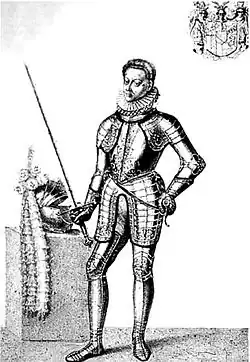 James and his eldest brother Ernest Frederick wanted to be sovereign rulers of their own fragment of Baden. Their father's last will and testament forbade a further division of the margraviate. However, the testament had not been properly signed and sealed. According to the three remaining regents, this invalidated the testament, so they allowed a division, thereby fragmenting Baden beyond the existing division into Baden-Baden and Baden-Durlach. James received the Lordship of Hachberg, with its seat in Emmendingen.[1] Ernest Frederick received Lower Baden, including the two largest cities, Durlach and Pforzheim. Their youngest brother George Frederick received Upper Baden, including the Lordships of Rötteln and Badenweiler and the Margraviate of Baden-Sausenburg.
