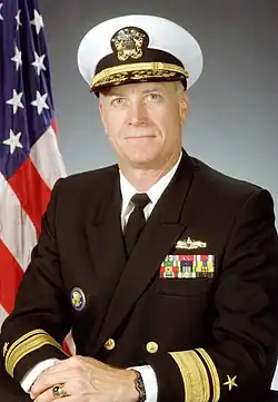 In Washington, D.C., Stark had assignments on the Navy Staff, on the National Security Council staff, and as executive director of the Chief of Naval Operations Executive Panel. He was selected in December 1991 for promotion to rear admiral (lower half), and was commander of the United States Pacific Fleet Training Command from June 1992 to March 1994. He assumed command of the North Atlantic Treaty Organization's Standing Naval Force Atlantic on 14 April 1994, and during that tour directed its operations in support of the United Nations embargo of Serbia and Bosnia and Herzegovina during the Yugoslav Wars. He was selected for promotion to rear admiral in December 1994.[1][2]