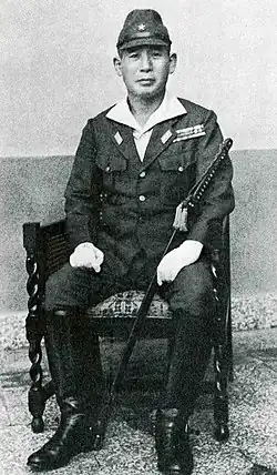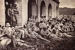 Lemonnier was subsequently taken prisoner himself and ordered by a Japanese general to sign a document formally surrendering the forces under his command.[7] Lemonnier refused to sign the documents. As a result, the Japanese took him outside where they forced him to dig a grave along with French Resident-superior (Résident-général) Camille Auphelle.[23] Lemonnier again was ordered to sign the surrender documents and again refused. The Japanese subsequently beheaded him.[7] The Japanese then machine-gunned some of the prisoners and either beheaded or bayoneted the wounded survivors.[26]