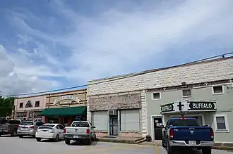 Two of the district's buildings were constructed prior to 1900. The Brasel Mercantile Store, built in 1973, currently houses the Ozark Cafe. The B.F. Ruble Building was built in 1894 for the Newton County Bank. A photography studio is now on the ground floor, and the second story is associated living quarters.[2]