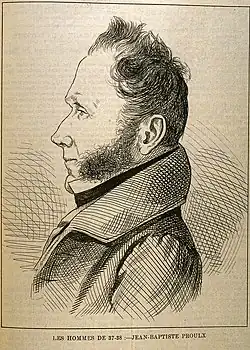 Jean-Baptiste Proulx (July 13, 1793 – July 17, 1856) was a farmer and political figure in Lower Canada from Nicolet. A veteran of the War of 1812, he served in the Legislative Assembly of Lower Canada from 1820 to 1830, and then as representative from Nicolet. He supported the Ninety-Two Resolutions and tried to organize revolt, suffering arrest in 1838. He was later released and returned to raising cattle, purchasing considerable land in Nicolet.
