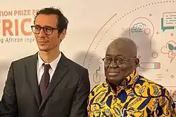 In 2009, he founded the African Innovation Foundation (AIF),[40] which aimed to support sustainable projects in Africa. The Foundation's "Innovation Prize for Africa (IPA)" was launched in 2011 in cooperation with the United Nations Economic Commission for Africa (UNECA).[41] The IPA held an annual competition honoring African entrepreneurs and innovators[42] through investment[43] in their ecosystems[44] and business development.[45] In 2016, the Innovation Prize for Africa celebrated its 5th anniversary,[46] and the AIF signed a Memorandum of Understanding (MoU) with the World Intellectual Property Organization (WIPO) for cooperation to support African innovators.[47] In February 2017, the AIF signed a MoU with the Botswana Innovation Hub to support innovations in Botswana.[48] In addition to the IPA, the AIF founded the ZuaHub, a platform connecting innovators with resources.[49] By 2017, the IPA had a database of over 6,000 innovators from 51 African countries.[50]