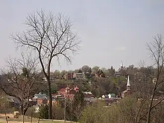 Jo Daviess County was formed in 1827 out of Henry and Putnam counties. It is named for Maj. Joseph Hamilton Daveiss, United States Attorney for Kentucky, who was killed in 1811 at the Battle of Tippecanoe.[5] The local pronunciation is "Davis". Jo Daviess County was founded exclusively by immigrants from New England. These were old stock "Yankee" immigrants, meaning they were descended from the English Puritans who settled New England in the 1600s. The completion of the Erie Canal caused a surge in New England immigration to what was then the Northwest Territory.