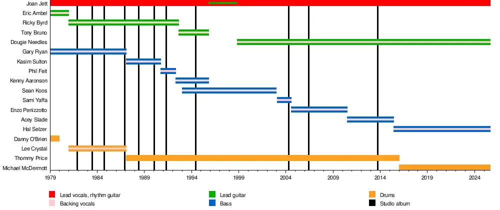 In 2015, the lineup consisting of Jett, Laguna, bassist Gary Ryan, drummer Lee Crystal, and guitarist Ricky Byrd were inducted into the Rock and Roll Hall of Fame.