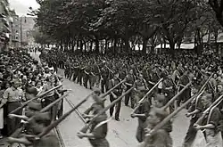 Though Manglano's dismissal from provincial Castellón jefatura might have looked like a fall from grace, it turned out to have been an episode in the Francoist checks-and-balances policy. Soon after in April 1939 the Nationalist troops entered Valencia, he was nominated mayor of the city,[165] at that time the third largest urban centre of Spain. The post rendered him one of the most powerful Carlist politicians within Francoist structures,[166] second only to the then Minister of Justice, conde Rodezno.[167] Unlike in Castellón, his relations with FET were good,[168] even though he resumed his strategy of favoring Traditionalist sympathizers.[169] Another preference visible in his personal policy was nominating individuals related to local business oligarchy; never again in the Valencian history would it have such a firm grip on local government.[170]