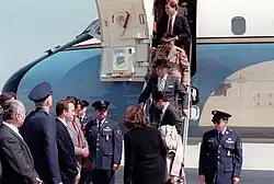 Balaguer (right) and his cabinet arrive in the US for a state visit in 1988