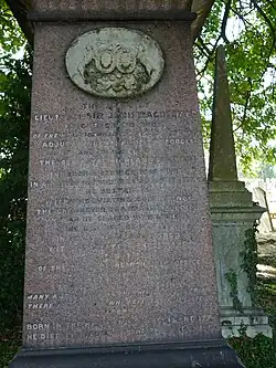 He lived at 25 Pall Mall in London.[8] He died at his residence, Bruton Street, London, 28 March 1850,[9] and was buried at Kensal Green Cemetery.[1]