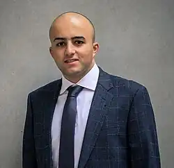 Harounoff was born in London, United Kingdom, the son of Israeli and British parents, and is of Iranian-Jewish ancestry.[19] He attended the Jesus College[20] University of Cambridge, where he was an Exhibitioner Scholar,[21] graduating with a bachelor's degree in Arabic, Persian and Middle Eastern Studies in 2017. He then moved to the United States to complete graduate studies in international relations, journalism and diplomacy at Harvard University in 2018, while also writing for The Harvard Crimson[22] and Harvard Gazette.[23] In 2019, he received his master's degree from Columbia Journalism School, where he served as managing editor of two college publications: Trumplandia[24] and Covering Religion.[25] He also founded and captained Columbia Journalism School’s first-ever soccer team. Harounoff is a 2019 Journalism Fellow at the Fellowships at Auschwitz for the Study of Professional Ethics (FASPE).[26]