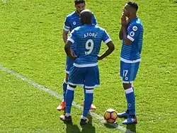 In search of first-team football, King was allowed to join Blackburn Rovers on loan until 31 December 2012,[64] with a view to eventually making the move permanent. Despite competition up front from Jordan Rhodes, Colin Kazim-Richards, Rubén Rochina and Nuno Gomes,[65] he made his debut two days later, coming on as a 55th-minute substitute for Marcus Olsson in a 2–0 defeat at home to Millwall.[66] He scored his first goal for the club at home to Cardiff City on 7 December, an equaliser after Mark Hudson had put Cardiff in front; however, Cardiff scored a further three goals and won 4–1.[67] After scoring two goals in eight appearances, King's transfer to Blackburn was made permanent as he signed a two-and-a-half-year contract on 2 January 2013, with the option of extending the deal by a further year.[68] In an FA Cup match against Derby County on 26 January,[69] he was forced to come off with a hamstring injury; he had also missed the three games prior to that with the same injury.[70] He went on to make a total of 20 appearances for Blackburn that season.[69]