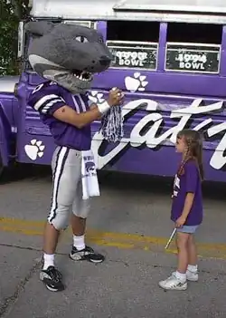 In 1998, Snyder was recognized as the National Coach of the Year by the Associated Press and the Walter Camp Football Foundation, and was awarded the Bear Bryant Award and the Bobby Dodd Coach of the Year Award.[55][56] Snyder was also selected Big Eight Conference coach of the Year by the Associated Press three times (1990, 1991 and 1993), joining Bob Devaney as the only two men in Big Eight history to be named Coach of the Year three times in a four-year period. Snyder was named Big 12 Conference coach of the Year twice during his first term, in 1998 (Associated Press, coaches) and 2002 (coaches). The winning attitude under Snyder was represented by a stylized wildcat, called the "Powercat" (shown in the infobox), that was added to the football team's uniforms in 1989.[57] The emblem became so popular that by the late 1990s it had essentially replaced "Willie the Wildcat", a character designed by art department students in the late 1950s.