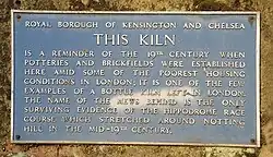 Unfortunately, because the racetrack bordered on the "Potteries and Piggeries" of Pottery Lane, (then a notorious slum known as "cut-throat lane") the race meetings were easily accessed by some of the poorer inhabitants of the neighbourhood. These were not the sort of customers that Whyte had in mind, and The Times correspondent complained of "the dirty and dissolute vagabonds of London, a more filthy and disgusting crew ... we have seldom had the misfortune to encounter." A public footpath traversing the land enclosed by Whyte's fences made it difficult to eject these unappealing visitors, whose "villainous activities" were a continual source of trouble.[4]