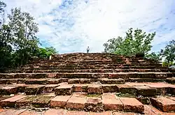 The laterite stairs leading up to the temple base of the Wat Khlong Suwankhiri