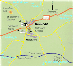 Both Killucan and Rathwire have ancient origins, as indicated by the ancient ringfort (rath) in Rathwire. According to legend, the fort was built by the Chieftain Guaire who gave Rathwire its name. The ruins of the hillfort remain on the western end of the village. Legend has it that Guaire is buried in the ruins and guarded by a savage dog. Subsequently, the Norman Lord Hugh de Lacy built his Motte alongside the remains of Guaire's Fort. In 1210, King John came to Rathwire to subdue the De Lacys when he fought and won the Battle of Killucan. While here, he also received the Gaelic King of Connacht, Cathal Crobderg O'Connor, who travelled to make his submission. In the 15th and 16th centuries, Rathwire belonged to the Darcy family of Platten. Their castle of Rathwire was burnt during the rebellion of Silken Thomas.