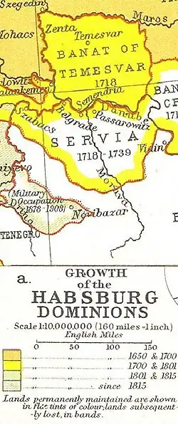 Growth of the Habsburg monarchy showing Serbia in 1718–1739.