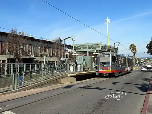 Kirkwood/La Salle station is a light rail station on the Muni Metro T Third Street line in the Bayview neighborhood of San Francisco, California. The station opened with the T Third Street line on January 13, 2007. It has a single island platform located in the median of Third Street between Kirkwood Avenue and La Salle Avenue, with access from crosswalks at both streets.