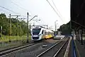 Koleje Dolnośląskie obtained their first electric multiple unit from Przewozy Regionalne in 2013 (it was an EN57AL which had been retrofitted the previous year). Three more EN57-class units were purchased and retrofitted at the cost of the Lower Silesian government. The company also purchased completely new electric vehicles – the first Newag Impuls units (31WE) were ordered in 2011 in a batch of five. In 2014 the operator ordered six Impuls 36WEa units; the following year, they ordered five more 31WE units.[1] The largest order in KD's history was its purchase of eleven 45WE units in 2017,[2] which, when the order was placed, were described as "the most well-equipped and comfortable trains in the country".[3]