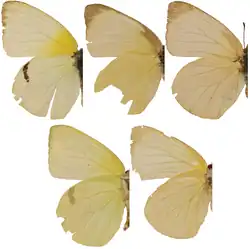 Lyside sulphur variation. The top row shows the upperside of the wings and the bottom row shows the underside of the wings.