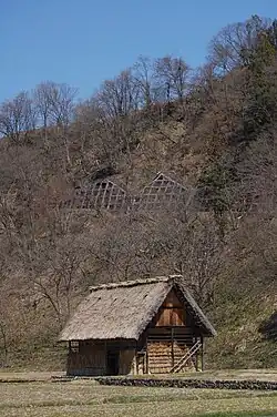 The kura storehouse was specifically used to store precious items. Other sorts of storehouses such as outbuildings (naya) and sheds (koya) were used to store more mundane items. The first kura appear during the Yayoi period (300 BC – 300 AD) and they evolved into takakura (literally tall storehouse) that were built on columns raised from the ground and reached via a ladder from underneath. They were especially prevalent on the Ryukyu Islands and Amami Ōshima.[2] During the Nara period (710–794), the government taxed the country in rice, and kura were frequently used to store it. After the introduction of Buddhism to Japan, kura were often used to store religious items, such as sutra.[3][4]
