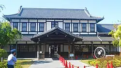 This two-storey structure was formerly part of Nijō Station in Kyoto until March 1996, and was subsequently moved to the Umekoji Steam Locomotive Museum where if formed the entrance building, housing the museum shop.[1]
