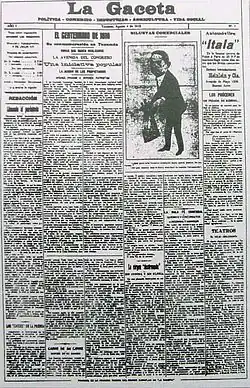 La Gaceta was established on August 4, 1912, by Alberto García Hamilton, an Uruguayan publisher who left for neighboring Argentina following a political dispute. La Gaceta earned a reputation for conservatism, and was opposed to populist leader Hipólito Yrigoyen during the 1920s, as well as to the pro-development administration of Arturo Frondizi, who had the paper censored in 1960.[1]