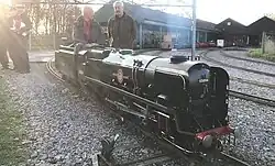 A dual gauge 10+14 in (260 mm) / 7+14 in (184 mm) light railway was established in the park in 1992, originally as a temporary layout.[3] A more permanent track was laid down in 1993, as the railway company was granted a three-year lease.[3] Five years later, a longer lease was negotiated and construction began on the two stations, Eastleigh Parkway and Monks Brook.[3] They were opened in 1999, although further work on the layout itself was carried out in 2000.[3] A tunnel was added in 2003, and Eastleigh Parkway station was extended in 2005 with the addition of a café and shop.[3]