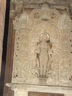 The Lakshmana Temple is a 10th-century Hindu temple built by Yashovarman during the Chandela dynasty[2] located in Khajuraho, India. It is dedicated to Vaikuntha Vishnu - an aspect of Vishnu.[1] As part of the Khajuraho Group of Monuments, and owing to its architecture and religious importance, the temple was inscribed on the UNESCO World Heritage List in 1986.[3]