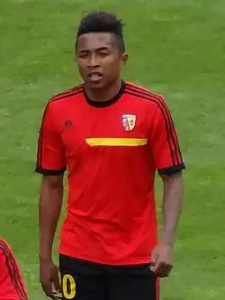 On the advice of fellow Malagasy player Hervé Arsène, Nomenjanahary decided to sign for Arsène's former club RC Lens in 2012.[4] After two seasons, Nomenjanahary's impressive performances earned him a new three-year contract, keeping him at the club until 2016.[5] When Lens made their return to the Ligue 1 in the 2014–15 season, Nomenjanahary played 26 of the team's 38 matches, and in the third game of the season he scored the only goal in a shock 1–0 win over Olympique Lyonnais.[6] Despite this, Lens ended the season in the bottom of the table and were relegated. On 11 May 2016, after four years with Lens, Nomenjanahary's contract expired.[7][8]