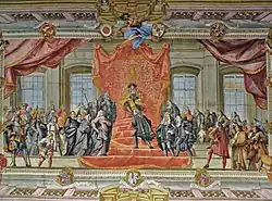 Emperor Maximilian presents the city of Klagenfurt to the Landstände. Fresco by JF Fromiller, Great Hall of Coats of Arms