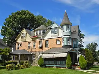 This district includes 103 contributing buildings; the majority are residences. Eighty-one of the houses were built between 1889 and 1891, with Queen Anne as the dominant architectural style. The remaining houses were built between 1899 and 1913 and include notable examples of the Dutch Colonial Revival and Georgian Revival styles. The oldest house is the Dickenson Farmstead, a 2½-story dwelling built in 1732 and expanded in 1790.[2] A notable non-residential building located in the district is St. John's Episcopal Church (1901); it closed in 2009.[3]