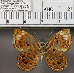 - ^ Hewitson, 1861. Illustrations of New Species of Exotic Butterflies Selected Chiefly from the Collections of W. Wilson Saunders and William C. Hewitson.