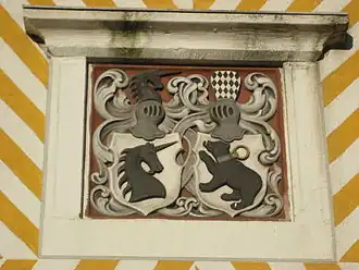 1. ^ The building, in Weser Renaissance style, was completed in 1588