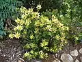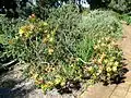 The shrub grows 1.5 m (4.9 ft) tall and bears flowers in July to August. Fire destroys the plant but the seeds survive. The seeds are stored in a toll on the female plant and are released after two months when they are ripe and fall to the ground. Rodents disperse the seeds. The plant is unisexual and there are male and female plants. Small towers do the pollination.