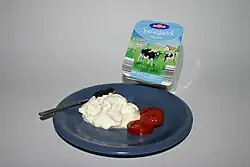• Quark - a fresh, mild cheese, in Germany, quark is sold in small plastic tubs and usually comes in three different varieties, Magerquark (lean quark, virtually fat-free), "regular" quark (20% fat in dry mass) and Sahnequark (creamy quark, 40% fat in dry mass) with added cream. In addition to that, quark is sold lightly sweetened with a variety of fruits as a dessert (similar to yoghurt).