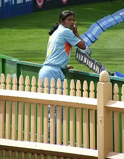 Shantha Rangaswamy led the women's team in their first women's test match against West Indies at M. Chinnaswamy Stadium at Bangalore on 31 October 1976.[14] Diana Edulji led India in its first WODI during the 1978 Women's Cricket World Cup against England on 1 January 1978 at Eden Gardens in Calcutta.[15] Mithali Raj captained India in the first WT20I on 5 August 2006 against England at Derby.[16]