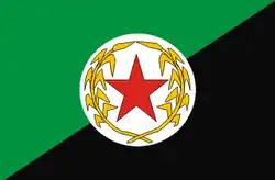 2018-present Flag of the PODEMOS Two equal horizontal bands of red and green with a vertical white band of the same size on the hoist side[3][4]