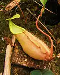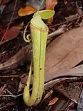 The official IUCN conservation status of each species is taken from the latest edition of the IUCN Red List.[1] Unofficial assessments based on the IUCN criteria are also included, but are presented in italics. Unless otherwise noted, taxonomic determinations and all other information are sourced from Stewart McPherson's two-volume Pitcher Plants of the Old World, published in 2009.[2] Where recent literature provides an altitudinal distribution that falls outside the range given in Pitcher Plants of the Old World, the discrepancy is noted.