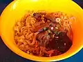 Noodle dish | The dish is made of yellow egg noodles, which are also used in Hokkien mee, with a spicy slightly sweet curry-like gravy. |