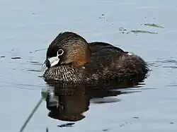 Grebes are small to medium-large freshwater diving birds. They have lobed toes and are excellent swimmers and divers. However, they have their feet placed far back on the body, making them quite ungainly on land.