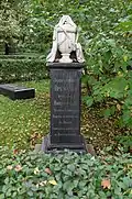 During the early Soviet period a number of monuments were stolen or destroyed. The cemetery was officially closed for burials in 1927, though they continued until 1932, and it was decided to turn it into a necropolis museum, displaying historically and artistically significant graves.[2][1] Alongside this was concept of gathering together the graves of the friends and contemporaries of Alexander Pushkin for the 1937 centenary commemorations of the poet's death. The architectural and planning department of Lensovet, the city administration, was tasked with creating a memorial park project.[2] Plans were drawn up by architects E.N. Sandler and E.K. Reimers, with further input from the city's chief architect L.A. Ilyin.[2] The Funeral Affair Trust was established to run the necropolis museum, including removing abandoned gravestones for sale as building materials.[4] The reconstruction radically altered the nature and appearance of the Tikhvin cemetery. With the intention being to create an "artists' necropolis", graves of those from other sections of society were removed. Fewer than a hundred of the original monuments were preserved.[2] Meanwhile, the remains of prominent artists, sculptors, composers and musicians were reburied in the cemetery. Among them were personal friends of Pushkin, including Konstantin Danzas, Anton Delvig, and Fyodor Matyushkin.[2]