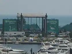 Beaumont Ford Pavilion[13] Square enclosure facing 6,300 seats under cover and 8,000 lawn seats 14,300