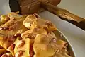 India A dessert made with flour, soaked rice, and molten jaggery, fried with oil, and topped with sesame or poppy seeds.
