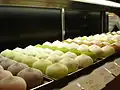 Mochi Japan Rice cakes made of short-grained glutinous rice, water, sugar and cornstarch. The batter is pounded into a paste and molded into shape. There are regional variations such as daifuku (Taiwan), kuih kochi (Malaysia) and muah chee (Singapore).