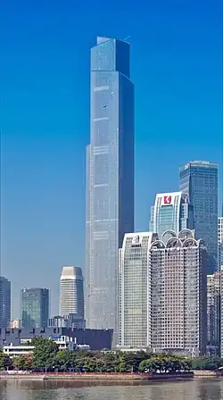 Guangzhou's first skyscrapers were built in the 1990s, and the rate of skyscraper construction increased in the 2000s. Since the 2010s, the rate of skyscraper construction has increased significantly. As of 2025, Guangzhou has 204 buildings with a height of above 150 metres, the fifth highest in the world according to the Council of Tall Buildings and Urban Habitat.[3] Despite this, it is bested by neighbouring Shenzhen, which has over 443 buildings above that height. The Pearl River Delta as a whole is one of the regions where skyscrapers are most concentrated. A significant portion of Guangzhou's skyscrapers including the tallest building in the city, Guangzhou CTF Finance Centre, are concentrated in Zhujiang New Town.